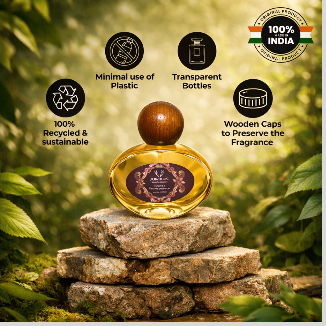 The perfume is presented in a transparent bottle that highlights its authentic essence, complemented by colorful wooden caps that add a luxurious and unique touch. To ensure safety and style, the bottle is secured in a premium magnetic lock cardboard case.