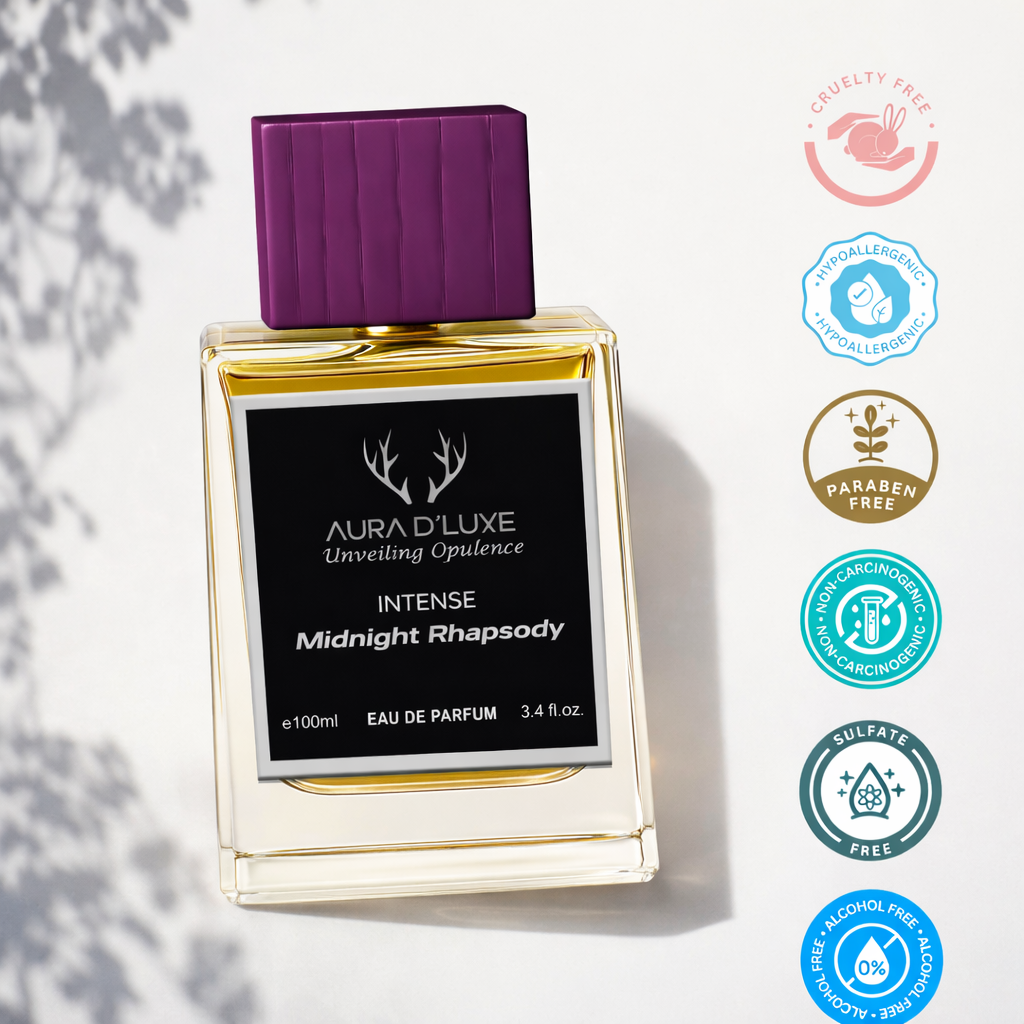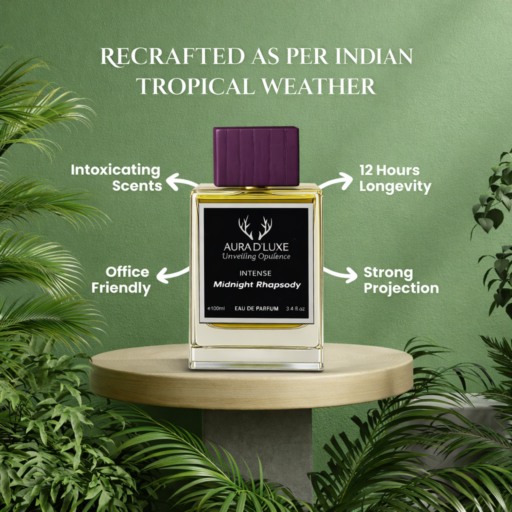 56% OffAura D’Luxe™ Midnight Rhapsody is a bold, long-lasting Eau De Parfum specially crafted for Indian tropical weather. With luxury notes of Pepper, Amber, Oud, and Leather, this 25–30% concentrated fragrance lasts up to 9–10 hours.