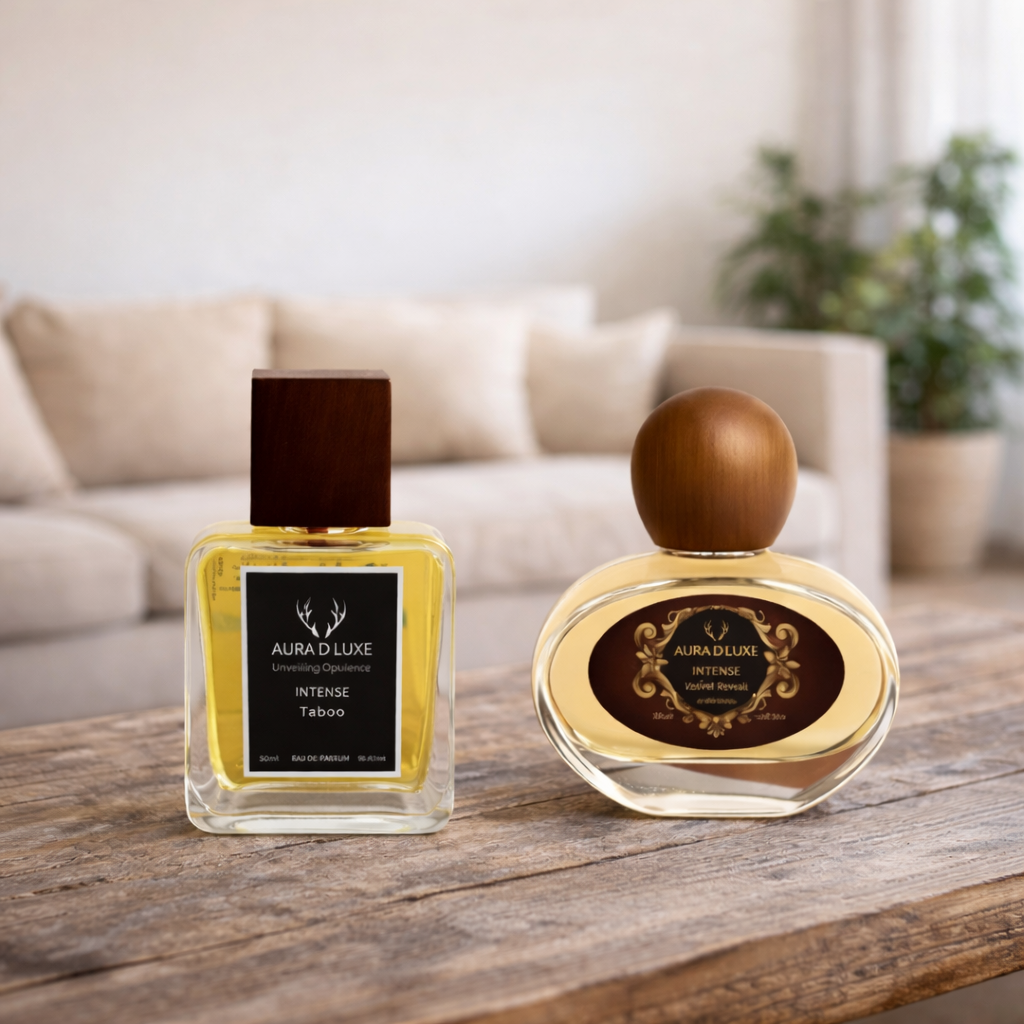 Aura D’Luxe presents a refined duality with Taboo (50ml) and Voilet Bombé (50ml)—two fragrances designed to express contrasting yet complementary personalities. Taboo is an intoxicating, provocative scent built for evenings and confident moments.
