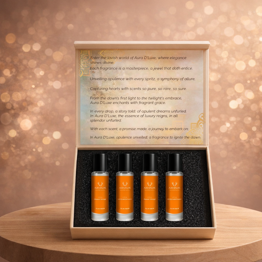 The Aura D’Luxe Discovery Set (Box A 01) is created for fragrance enthusiasts who appreciate variety, refinement, and versatility.